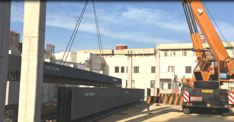 Per la copertura, infatti, il progetto prevede il montaggio ed il completamento con getto in opera di travi tralicciate di lunghezza pari a 24 metri ed altezza di 2.00 metri.